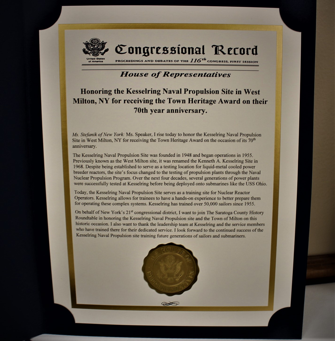 70th Anniversary of the Kesselring Navy Site & Milton Town Heritage Award Presentation